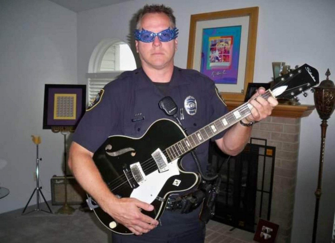 John was a St. Charles Police Officer for over 25 years, he loved his work, his friends, his family, and his music. John enjoyed collecting musical instruments. Guitars mostly. He and some friends would sit around and strum on them from time to time, I honestly think John wanted to be in a band. John started to play his guitars more often and was really doing good, and he would often say, “Wanna start a band?” I knew he was kidding, but I always said sure! Unfortunately, the band was never to be, as Cancer struck my very good friend, at the age of 56.