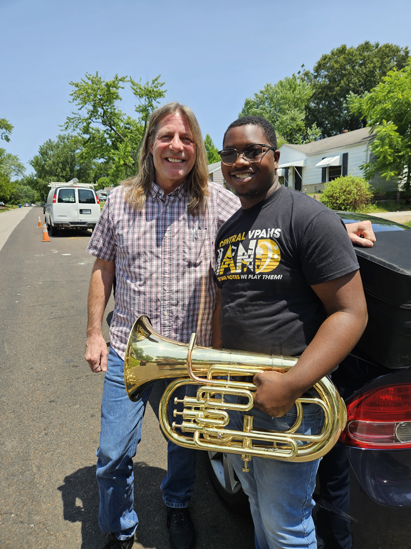Because of Officer John L. Greenley, dreams will be kept alive! In John’s memory, Play It Forward introduced me to Anthony, a senior at CPVA High School. Young Anthony has been playing for nearly 5 years, and upon graduating this year he needed his own Tuba to continue his college education when he attends school in Chicago this fall. We purchased Anthony the Tuba.