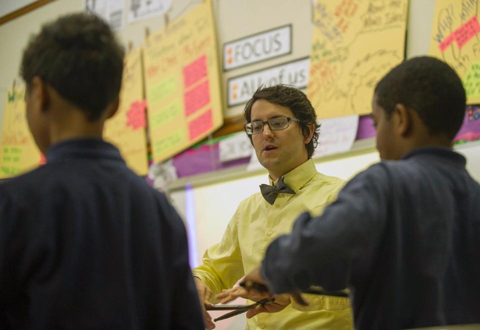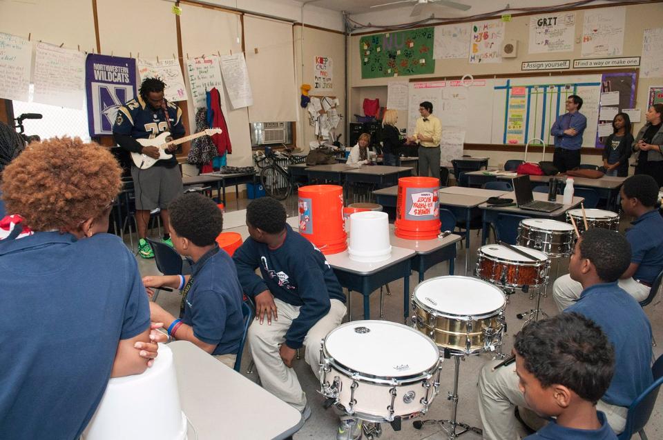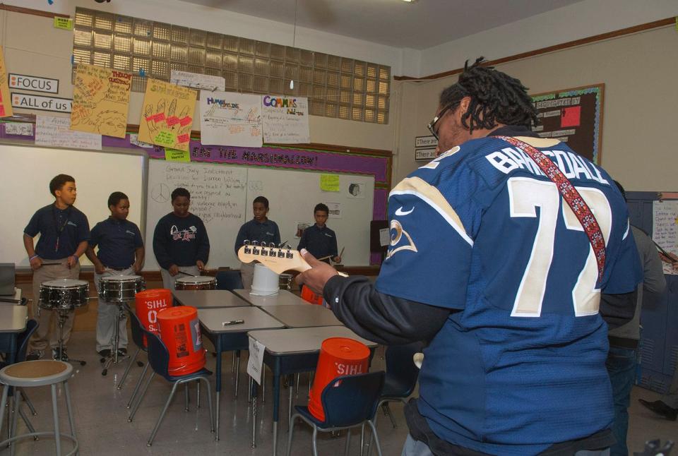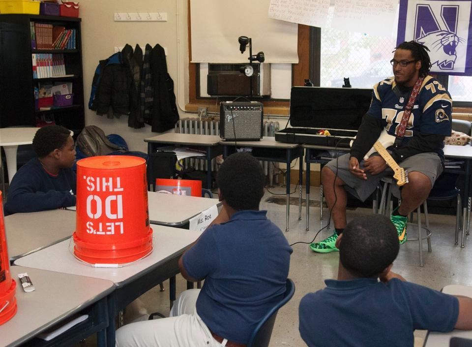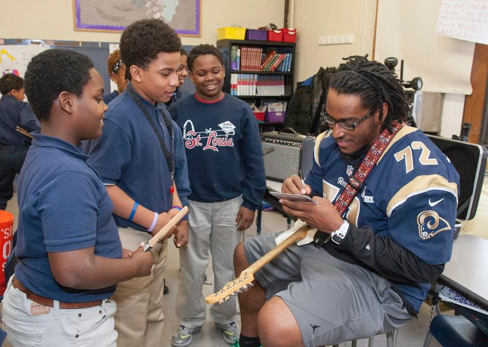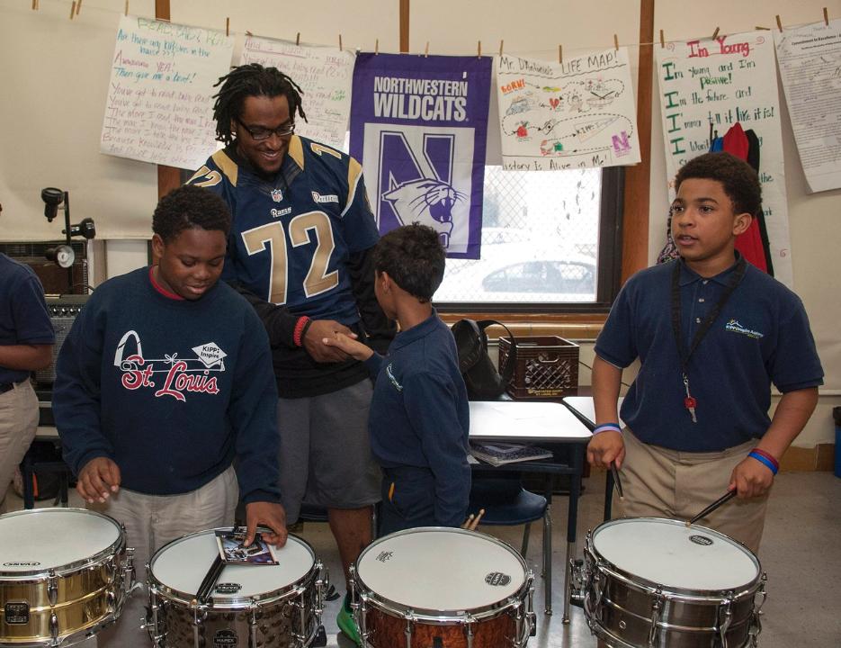 Joe Barksdale of the St Louis Rams at KIPP Inspire Academy